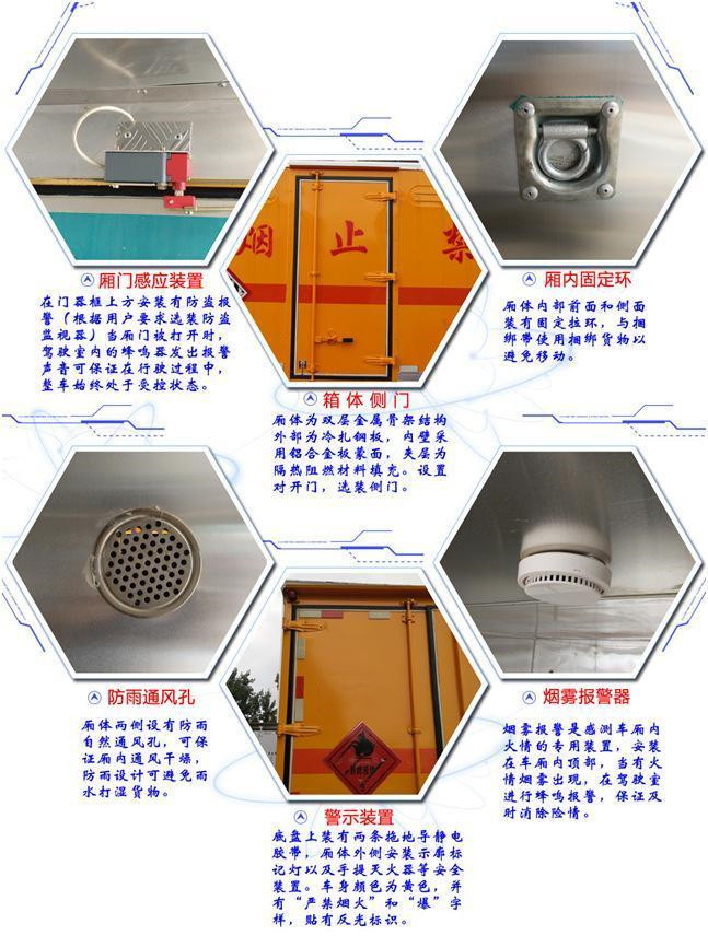 配置:東風7噸爆破器材運輸車,底盤采用東風原廠危化底盤,底盤型號EQ1125SJ8CDCWXP,發(fā)動機型號D30TCIF1,排放標準:國六,燃油:柴油版,法士特8檔變速箱,新款可翻轉(zhuǎn)駕駛室,發(fā)動機:云內(nèi)機動發(fā)170馬力,輪胎: 245/70R19.5 16PR真空胎,內(nèi)飾豪華,多功能方向盤,方向助力,原廠空調(diào),遙控中控鎖,電動玻璃,前盤制動,ABS、離合助力、 排氣制動、動力轉(zhuǎn)向,限速裝置,排氣管前置+防火罩,轉(zhuǎn)向輪防爆胎應(yīng)急裝置,剎車襯片磨損提醒,安全帶未寄報警,帶最新規(guī)要求的FCWS(防碰撞預警),LDWS(車道偏離預警)。