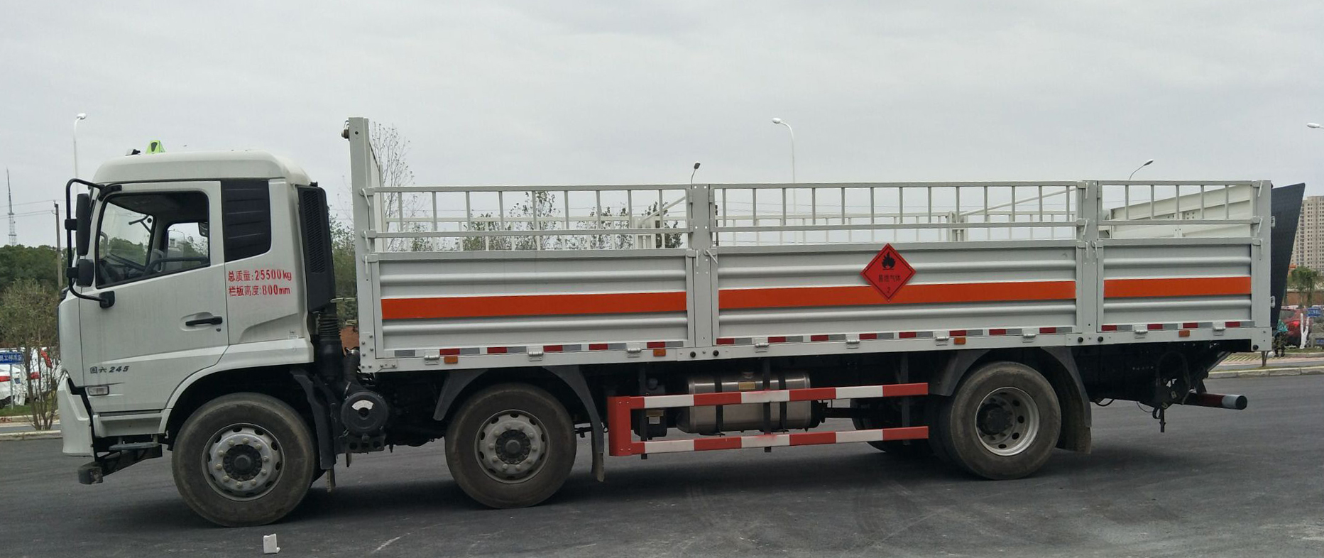 氣瓶運輸車廂體為欄板或倉欄式結構,欄板外飾冷軋鋼板,廂體兩側分為兩段活動式結構上下翻轉,頂部高欄左右開啟,后部設置欄板上下開啟,可選裝液壓尾板。底板采用3mm厚優(yōu)質碳鋼防滑板,可選裝鋪設膠皮,底板邊緣間斷式焊接固定臥環(huán),方便固定捆綁氣瓶,操作方便。欄板內側可選裝捆綁帶,適用于各種氣罐、氣瓶直立運輸,煤氣罐兩層運輸。底板橫梁加密,為避免地板變形焊接間距不大于350mm。廂體張貼危險品標牌、易燃氣體標牌、橙色反光帶、三角危險品吸頂燈、導靜電托地帶。其它按氣瓶運輸車標配生產。